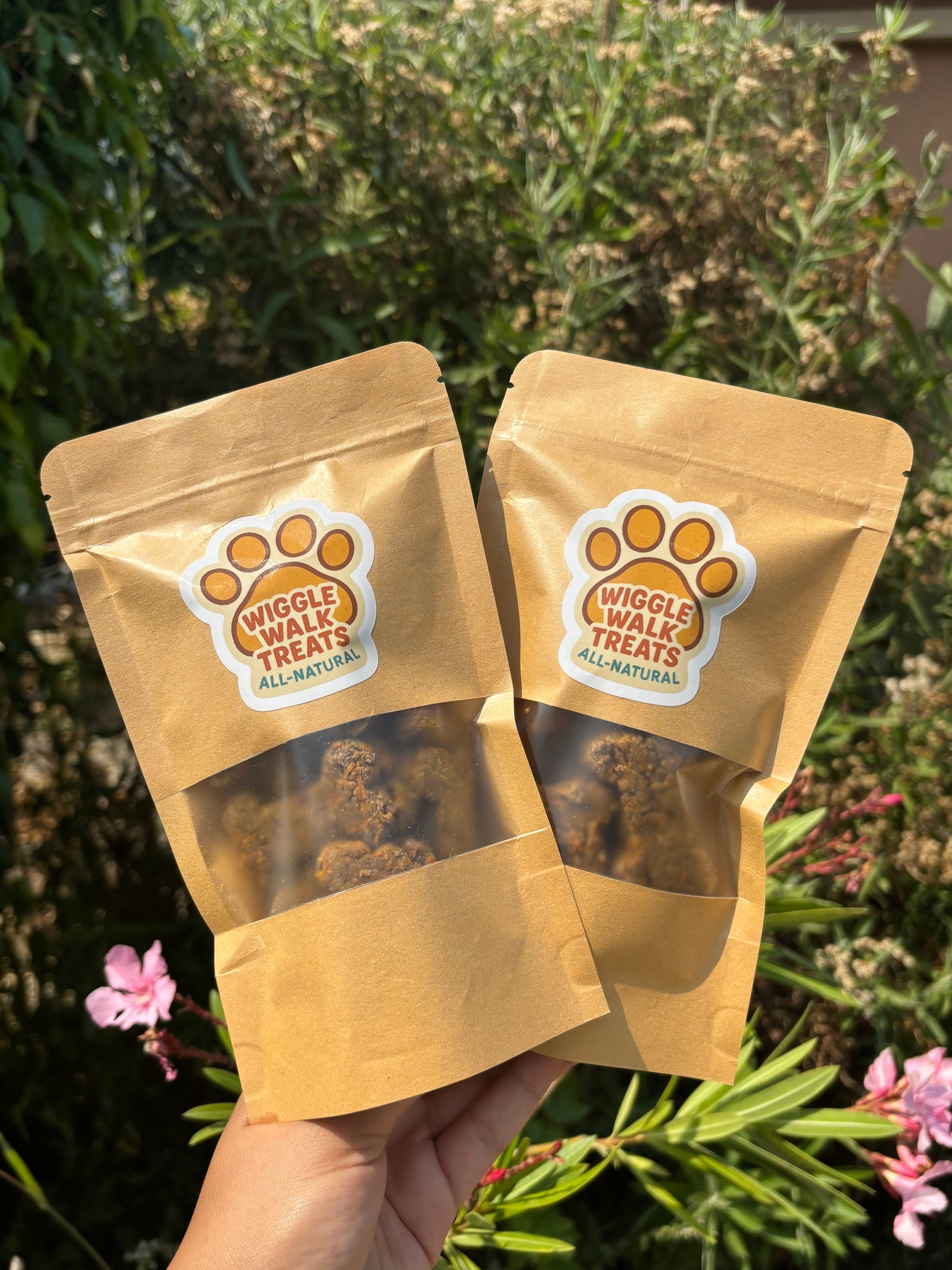 Our Bison & Carrot Crumbles are small-batch, all-natural biscuits packed with lean bison, fresh carrots, and simple ingredients you can trust. Perfect for rewarding good behavior, training, or just showing your pup some love.